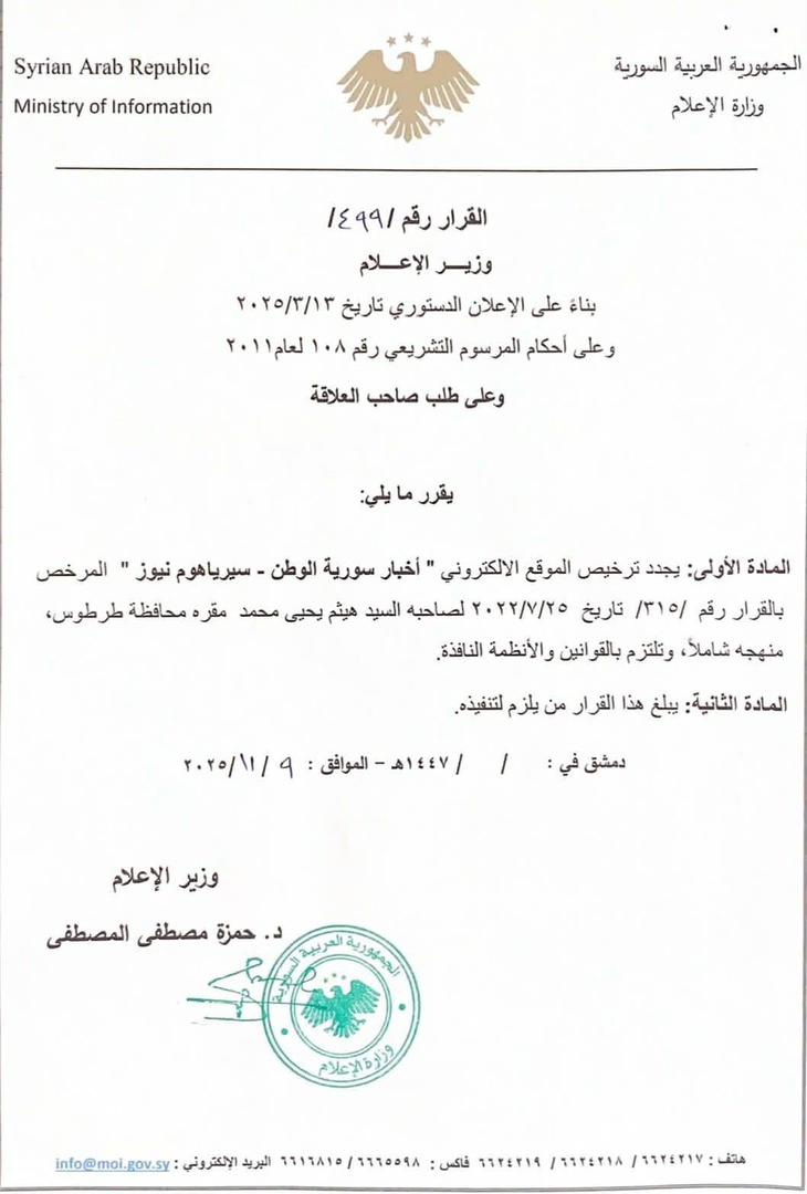 جميع الحقوق محفوظة لموقع syriandays - syrianews - سيريانديز- أخبار سورية © 2006 - 2025