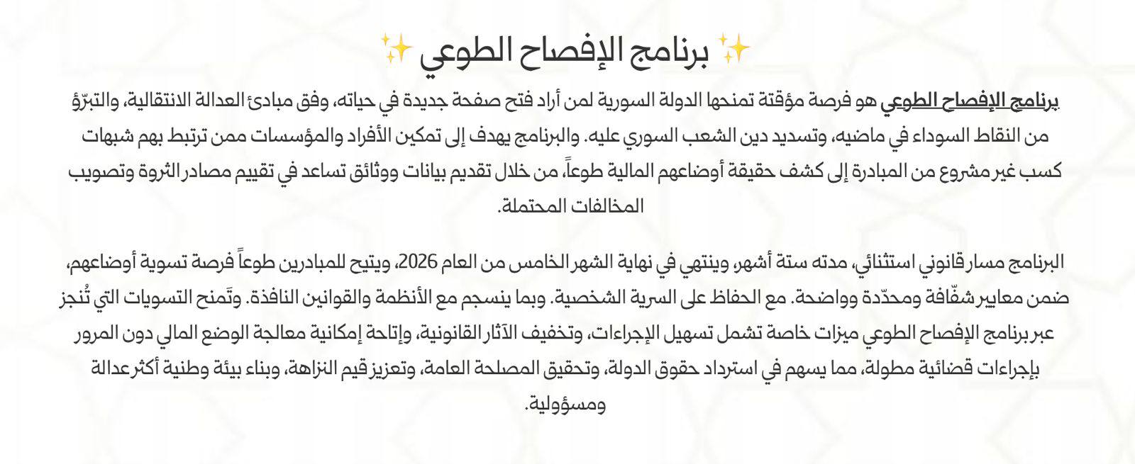 واعتبر حقوقيون أن عمل اللجنة الوطنية لمكافحة الكسب غير المشروع بوضعه الحالي يفتقد إلى الشفافية والمساءلة، مؤكدين أنه لا يعقل أن يحرم المواطنون من حقوقهم بناء على تقارير غير موثوقة أو شائعات متداولة. الأمر الذي يفرض – استنادا إلى الإعلان الدستوري النافذ حاليا – أن تحقيق العدالة يتطلب العمل ضمن إطار قانوني واضح يحفظ حقوق الجميع ويضمن عدم تجاوز السلطة لحدودها.